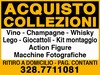 ACQUISTO COLLEZIONI. Vino - Champagne - Whisky - Lego - Giocattoli - Kit montaggio - Action Figure - Macchine Fotografiche. RITIRO A DOMICILIO. PAGAMENTO CONTANTI. Tel. 328.7711081