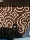 Mobile vintage da entrata con 6 cassetti, specchiera e due ante. Interno tappezzato con tessuto marrone e beige con motivo geometrico.