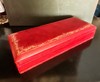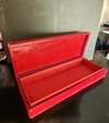 Antico Portagioie Cofanetto Portaoggetti rivestito in pelle rossa con decorazioni in filo d'oro , interno in raso rosso ,segni del tempo come da foto ; dimensioni cm 33 x cm 13 x cm. 7. Vendo € 88 .Gradito contatto telefonico