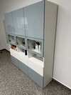 Vendo armadio modello Besta Ikea, bianco e blu/grigio chiaro, con vetrine e cassetti, a 3 ante, per salotto o camera. Comprato 1 anno fa, usato pochissimo, ancora nuovo. Lo vendo per aver cambiato casa, ora poco spazio, casa piccola. Gia' mont