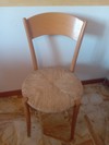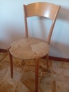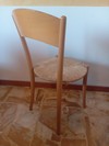 6 sedie in legno. Ripiano in vimini.Poco usate. Stato molto buono.molto belle. Vendo 40€ in blocco.