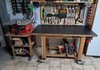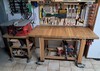 Presenta due ripiani inferiore per il deposito materiale, e il ripiano sopre dove mettere le attrezzature da lavoro il tutto fatto con listelli uniti tra loro.