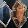 Cofanetto porta-fedi nuziali francese fine '800 in vetro smussato color bronzo dorato .Realizzato a forma di esagono cm 10 x cm 5 x cm 7 piccola sbeccatura angolare come da foto .Vendo € 158 . Gradito contatto telefonico wap