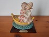 Statuina di coppia in barca, su base di legno e targhetta "l'arte nel mondo".