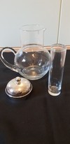 | Caraffa per bibite con portaghiaccio con coperchio in silver plated, altezza 27,5cm. larghezza 17cm. in buono stato, mai usata vendo a 30€ |