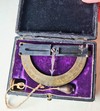 Antico strumento goniometro semicircolare in ottone.Si tratta di uno strumento dotato di traguardi, e filo a piombo.Supporto non originale . Custodia originale con struttura in legno rivestita di velluto, dimensioni cm.8 x cm5,5 x cm. 2 .Vendo € 85